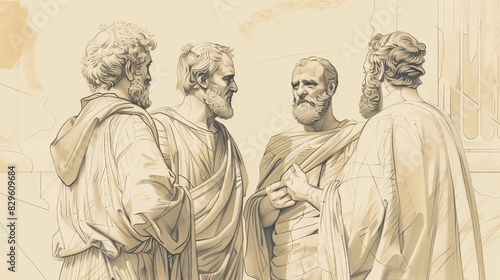 Biblical Illustration: Paul's Arrest and Trial, Defending Faith Before Festus and Agrippa, Beige Background, Copyspace