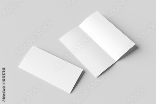 Bi-fold or half fold brochure blank mockup isolated on gray background, Realistic 3D rendering
