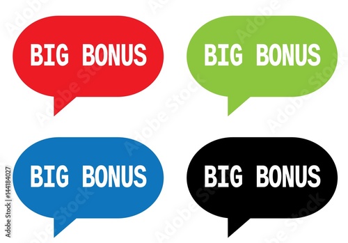 BIG BONUS text, on rectangle speech bubble sign.