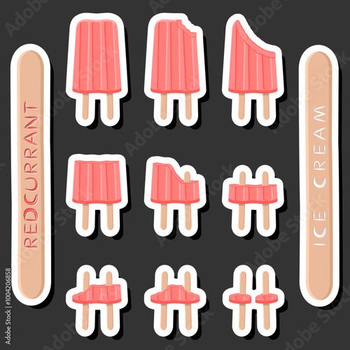 ice, cream, ice cream, red, currant, redcurrant, gelato, vector, sticker, food, sweet, dessert, cone, popsicle, sorbet, double, ball, waffle, summer, stick, bucket, scoop, eskimo, sherbet, sundae, fruity, chocolate, isolated, set, collection, assortment, different, cold, portion, label, logotype, magnet, icon, patch, illustration, cartoon, background, emblem, confectionery, confection, pastry, shop, store