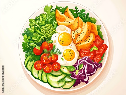 plate, vegetable, egg, colourful, fresh, toast, arrange, attractively, fruit, cookery, green, herb, dinner, comfort, red, bowl, farm, design, wellness, ambience, dine, salad, food, tomatoes, healthy, meal, diet, lettuce, vegetarian, tomatoes, cucumber, dish, pepper, vegetable, cheese, onion, lunch