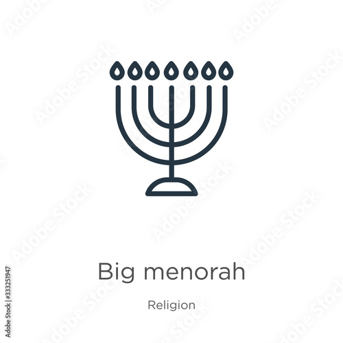 Big menorah icon. Thin linear big menorah outline icon isolated on white background from religion collection. Line vector sign, symbol for web and mobile