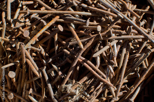 Big pile of rusty nails close up