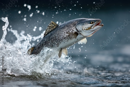 Big Spotted Seatrout Fish Jumping Out of Water Splash