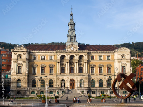 Bilbao City Hall building, located in the Ernesto Erkoreka square, where you can see a sculpture by Jorge Oteiza, Basque Country, Spain, Bilbao, Vizcaya
