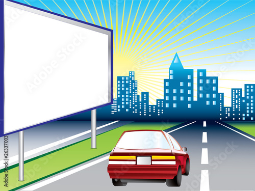 billboard, car, city landscape, advertise, commercial, street, urban, signboard, city, building, board, advert, advertisement, announcement, background, banner, blank, blue, business, communication, company, display, empty, information, large, marketing, media, message, poster, promo, promotion, publicity, road, sale, selling, signs, signpost, sky, space, vector, town, sun, text, copy, illustration, avenue, signs