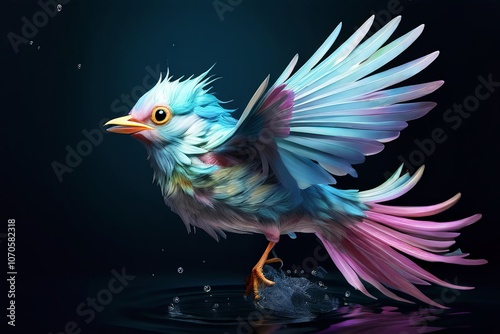 bird fish hybrid with feathered wings scales and a cheerful chir
