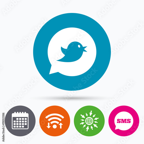bird, wing, social, media, beak, speech, bubble, message, fowl, feather, animal, chick, nestling, icon, signs, buttons, symbol, flat, label, mark, token, shape, creative, quality, stamp, concept, vector, badge, seal, art, graphic, illustration, geometric, app, calendar, web, text message, arrow, wi-fi, upload, download, cyberspace, communication