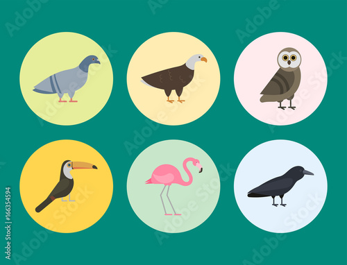 Bird species collection different vector illustration wild animal characters avifauna tropical feather pets