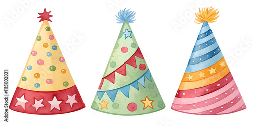 Birthday cap watercolor set painting drawing cut out isolated on white background