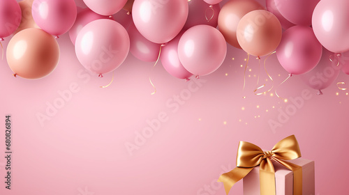 birthday card background with balloons and gold ribbon