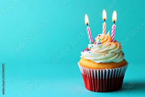 birthday cupcake with candles turquoise background