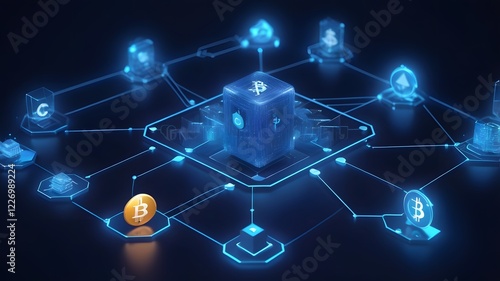 Bitcoin blockchain network visualization digital space infographic tech environment futuristic viewpoint