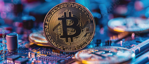 Bitcoin crypto currency gold coins as digital cryptocurrency symbol stock financial exchange business market trade charts. Btc blockchain future payments, investment technology background .