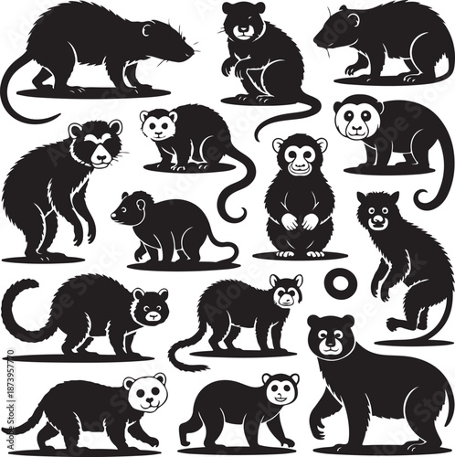 animal, silhouette, black, white, background, illustration, vector, graphic, icon, set, collection, mammal, wildlife, art, design, clip art, simple, minimalistic