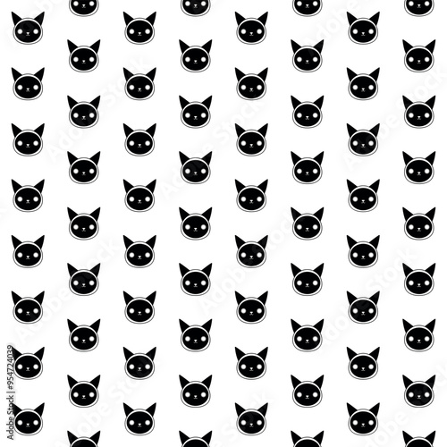 seamless, pattern, cat, decoration, vector, wallpaper, design, element, black, white, animal, nature