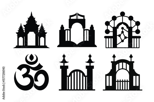 church, icon, set, black, white, architecture, landmark, design, building, religion, place, spiritual, silhouette, vector, symbol, faith, holy, cathedral, roof, tower, church steeple, window, door, christian, christianity, temple, iconic, historical building, heritage, outline, illustration, line, art, religious