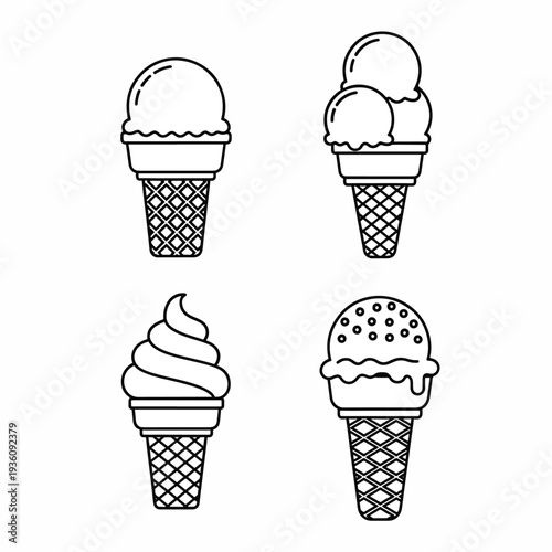 food, cone, cold, sweet, snack, tasty, white, simple, scoop, summer, creamy, design, dessert, graphic, pattern, isolated, ice cream, sprinkle, hand-drawn, black-and-white