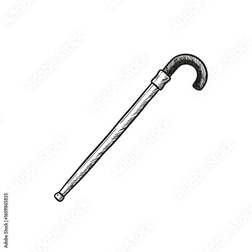 cane, walking stick, black, white, illustration, isolated, background, vignetting, drawing, monochrome, no people, mobility, support, elderly, outline, hand-drawn, minimal, white background, isolated object, classic, vintage, medicals, assistance, stability, old-fashioned, wooden, minimalistic, line art, realistic, stylised, balance, health, senior, orthopedics, traditional, grip, simple, functional, elegant, tool, ageing, retro, aid, helpful, independence