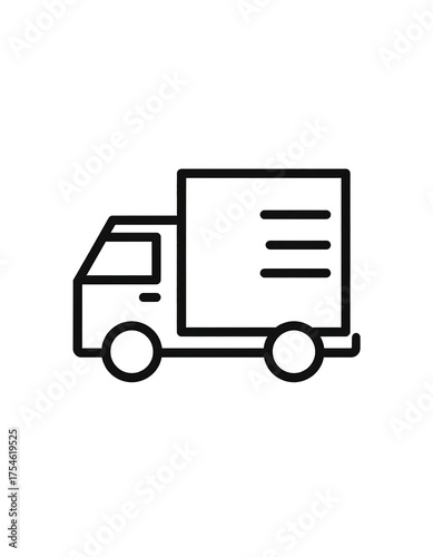 Black and white line drawing of a delivery truck, simple and minimalistic, on a white background
