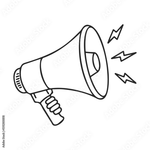 megaphone, black, white, drawing, sound, communication, loudspeaker, announcement, hand, outline, illustration, device, tool, expression, noise, volume, alert, call, monochrome, vector, amplify, symbol, speak, horn, graphic, line, vignetting, icon, simplistic, linear, minimalist, image, abstract, warning, art, creative, broadcast, media, loud, power
