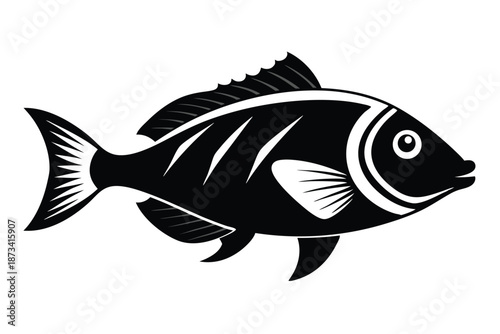 Black and White Parrotfish Vector Silhouette, Isolated on White Background