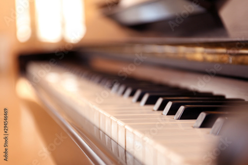 Black and white piano keys indoors, closeup