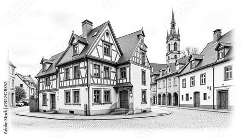 mediaeval, european, house, black, white, vignetting, historical, old, town, vintage, architecture, drawing, ink, traditional, village, street, cobbled, artistic, illustration, old-fashioned, heritage, cultural, hand-drawn, city landscape, german, bavaria, history, monochrome, antique, craftsmanship, aesthetic, historical site, urban, nostalgia, print, postcard, rustic, classic, elegant, fine art
