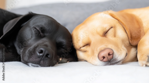 dog, puppy, labrador, retriever, puppy, sleeping, nap, friendship, cute, adorable, black, yellow, cuddle, cosy, peaceful, slumber, content, trust, bedding, hugs, animal, pet, isolated, mastiff, bordeaux, canino, brown, portrait, white, breed, purebred, funny, domestic, bulldog, mammal, studio, boxer, pei