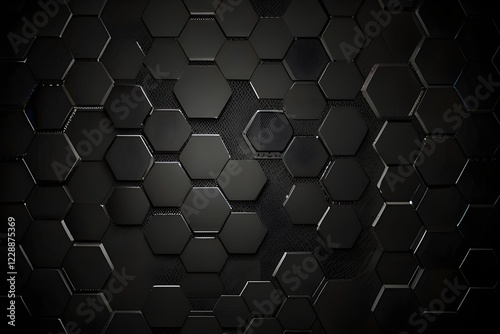 Black background. Dark hexagon carbon fiber texture. Black honeycomb metal texture steel background. Web design template vector illustration EPS 10. Generative AI