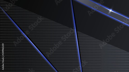 Black background with metal line hexagon texture and shiny light rays. Vector abstract graphic design banner pattern presentation background wallpaper web template.