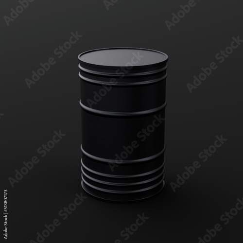 Black barrel on a dark background - black canister, can, oil, petroleum