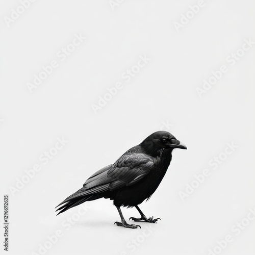 Black Bird Standing Alone on a White Background in Minimalist Style