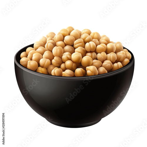 Black bowl of chickpeas isolated on transparent background