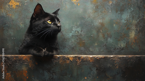 black, cat, resting, textured, background, felino, pet, animal, portrait, eye, fur, whisker, calm, peaceful, domestic, cute, sitting, profile, dark, expression, paw, curious, soft, serene, beautiful, nature, wildlife, closeup, head, looking, still, quiet, adorable, charming, elegant, graceful, mysterious, shadow, light, colours, art, photo, studio, indoor, home, companion, creature, gaze, relaxed