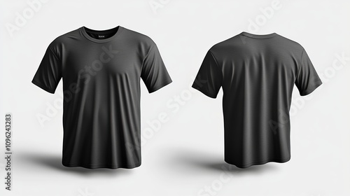 Black clean tshirt mockup isolated in front and back views 3D rendering Empty gray undershirt model Mockup Clear dark classic soccer shirt template , white background, 4k Resolution