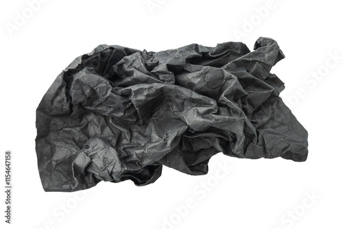 Black crumpled paper isolated on transparent background