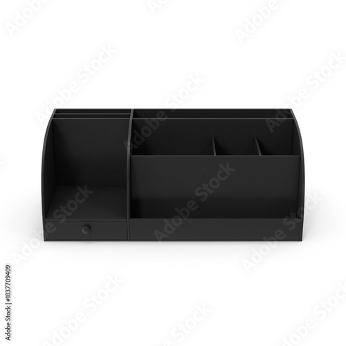 black, desk, organiser, office, supply, box, holder, compartment, storage, paper, pen, card, tool, workplace, workspace, accessory, divider, plastic, container, smooth, minimal, modern, clean, functional, simple, neat, design, utility, table, work, drawer, organisation, tidy, desktop, equipment, kit, stationery, writing, object