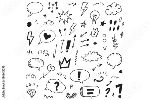 Black Doodle Pattern Silhouette Set – Hand Drawn Vector Line Art, Seamless Abstract Sketch Elements
