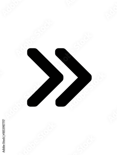 Black double arrow symbol in modern minimalist design with bold typography on white background for navigation icon