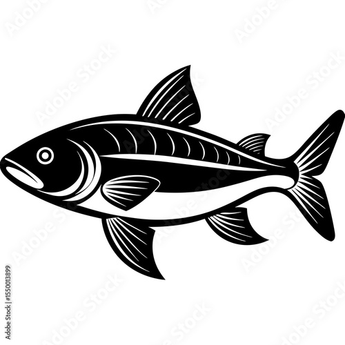 fish, animal, aquatic, sea, ocean, marin, wildlife, nature, water, swimming, fin, gill, scale, fresh water, seafood, food, illustration, drawing, clip art, isolated, black, white, symbol, icon, graphic, design, art, outline