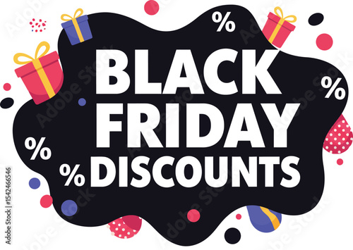 Black Friday Discounts Promotion Graphic with Gift Boxes and Percentage Symbols for Shopping Sales