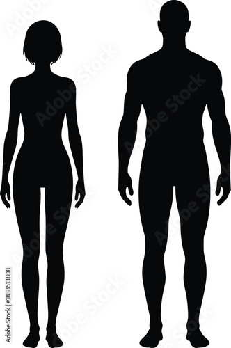 silhouette, human, body, anatomy, vector, figure, male, female, naked, fitness, dimensioning, standing, health, shape, ideal