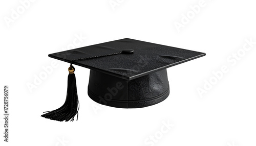 graduation, cap, black, tassel, academic, ceremony, degree, diploma, square, three-dimensional, rendering, education, student, achievement, success, honour, hat, formal, gown, school, university, college, mortarboard, top, wear, symbol, celebration, icon, image, visual, illustration, design