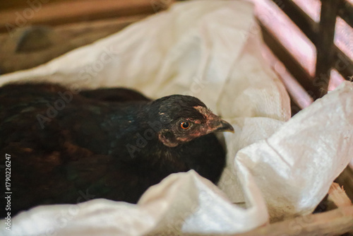 black, hen, resting, nest, box, chicken, caged, poultry, domestic, farm, fowl, bird, animal, feather, beak, agriculture, farm animal, avian, nature, rural, farming, countryside, close, up, ornithology, wildlife, backyard, healthy, curious, tranquil, safe, comfort, home, habitat, care, breeding, laying, brooding, fluffy, purebred, breed, sleepy, serene, relaxed, peaceful, protection, shelter, warm