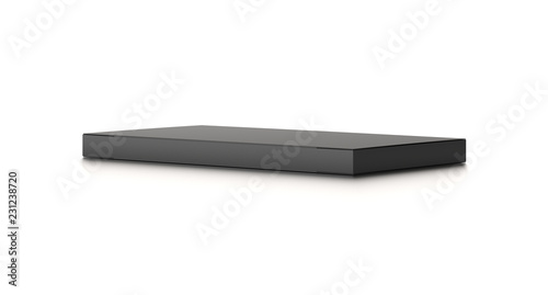 Black horizontal thin blank box from top side far angle. 3D illustration isolated on white background.