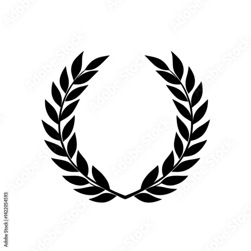 black laurel wreath symbolizing victory or achievement, often used in awards or emblems. symmetrical design features two branches of leaves curving upward and meeting at top