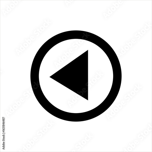 Black left-pointing triangle inside a circle. Rewind or back icon for media player, UI navigation, digital interface, web control, or playback button design.