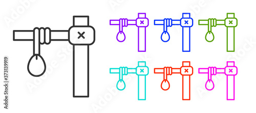 Black line Gallows rope loop hanging icon isolated on white background. Rope tied into noose. Suicide, hanging or lynching. Set icons colorful. Vector.