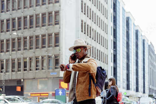 man, young, goggles, black, standing, street, african, looking, city, urban, casual attire, tied-up, tied-up, lively, active, transportation, road, person, lifestyle, day, modern, stylish, service, metropolis, building, way, gesture, waiting, auto, arm, adult, daylight, downtown, entrepreneur, photogenic, hours, male, style, outdoors, horizontal, smartphone, mobile, technology, communication, phone, looking away
